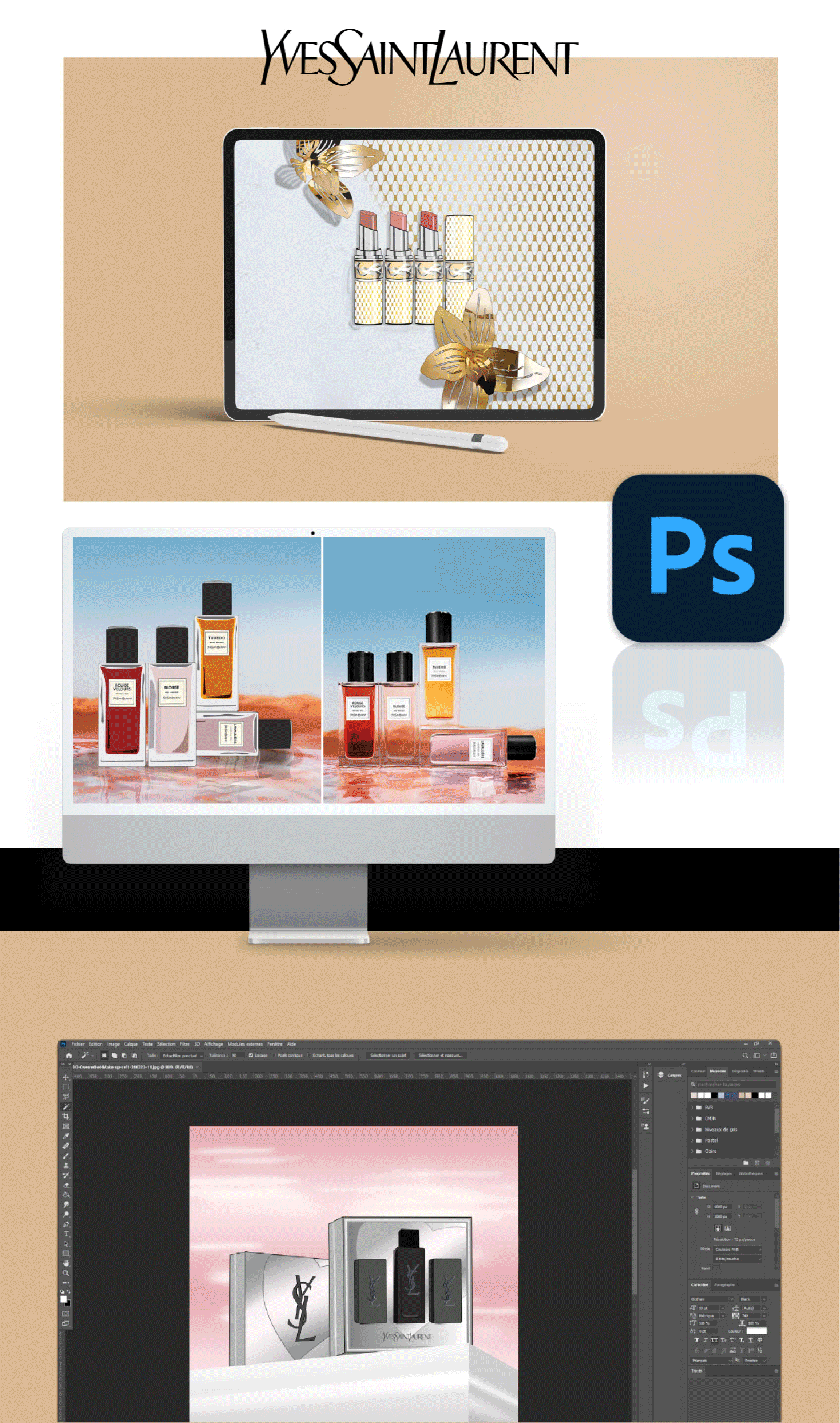 Production de plusieurs illustrations depuis plus de trois ans pour Yves Saint Laurent Beauté, en coopération avec l’agence de création parisienne Point11.Plusieurs fois par an, l’entreprise fait la promotion de coffret et produits de la célèbre marque de luxe à travers des shootings photo.